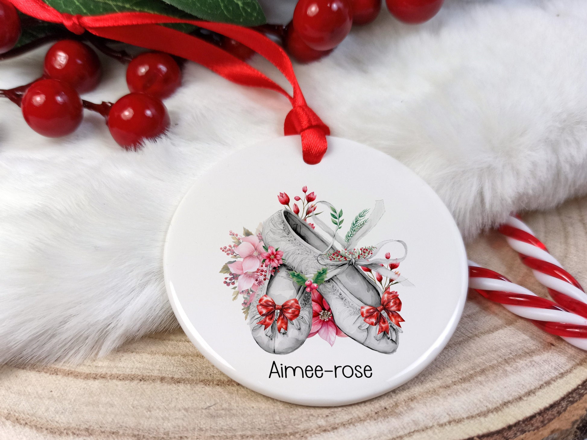 Ballet Ceramic Christmas Decoration Personalised with name, Hanging Xmas Tree Ornament for a Ballerina