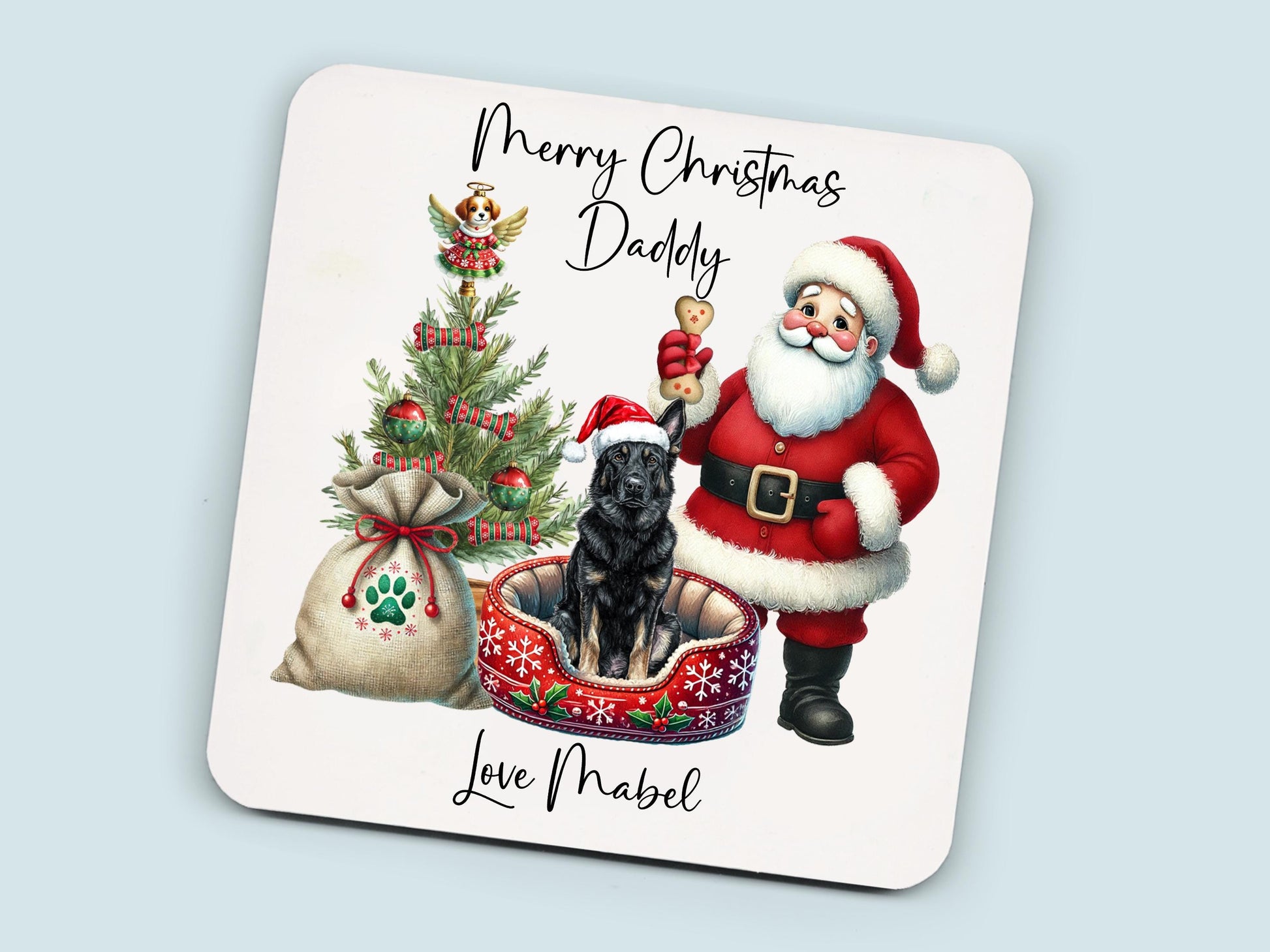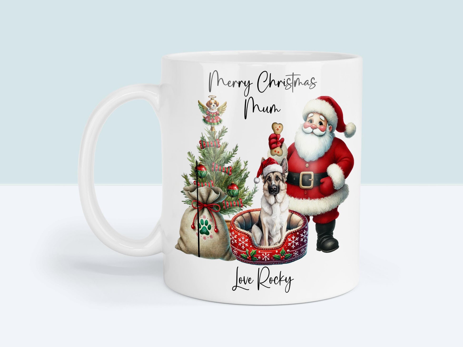 Celebrate the festive season with this adorable German Shepherd- Alsatian Christmas Mug — the perfect gift for any proud dog mum or dad! Featuring a charming design with Santa, a Christmas tree, and a cute German Shepherd-Alsatian ,this mug will warm hearts and hands alike.