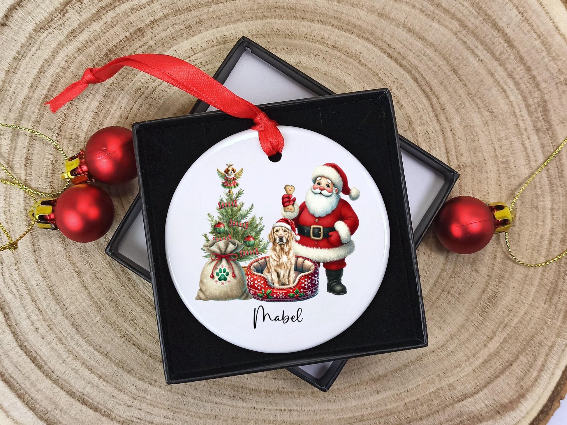 Golden Retriever Christmas Personalised Ornament | Ceramic Dog Tree Decoration | Festive Pet Name Gift | Keepsake