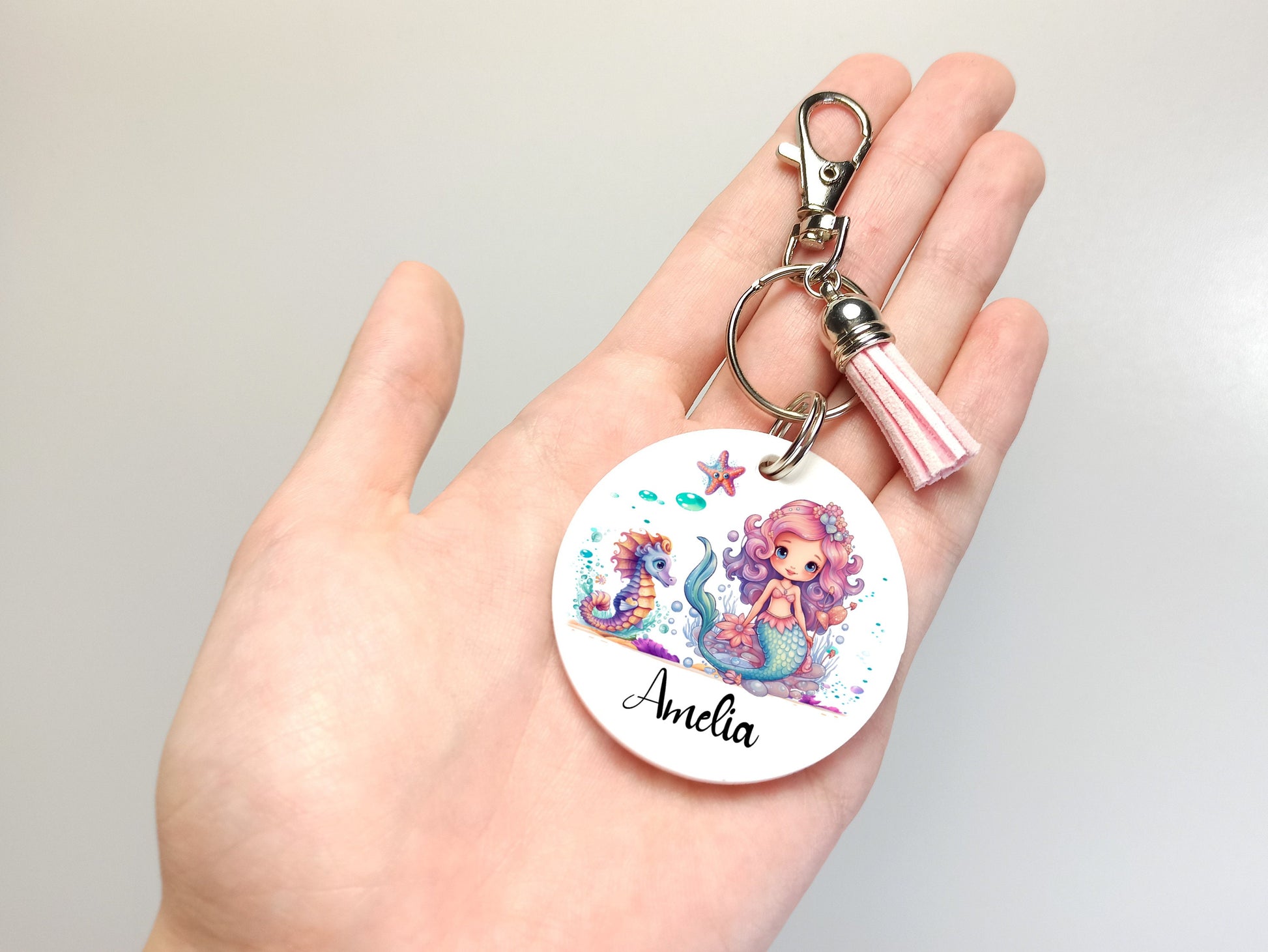 Mermaid Bag tag Personalised Keyring, School bag tag