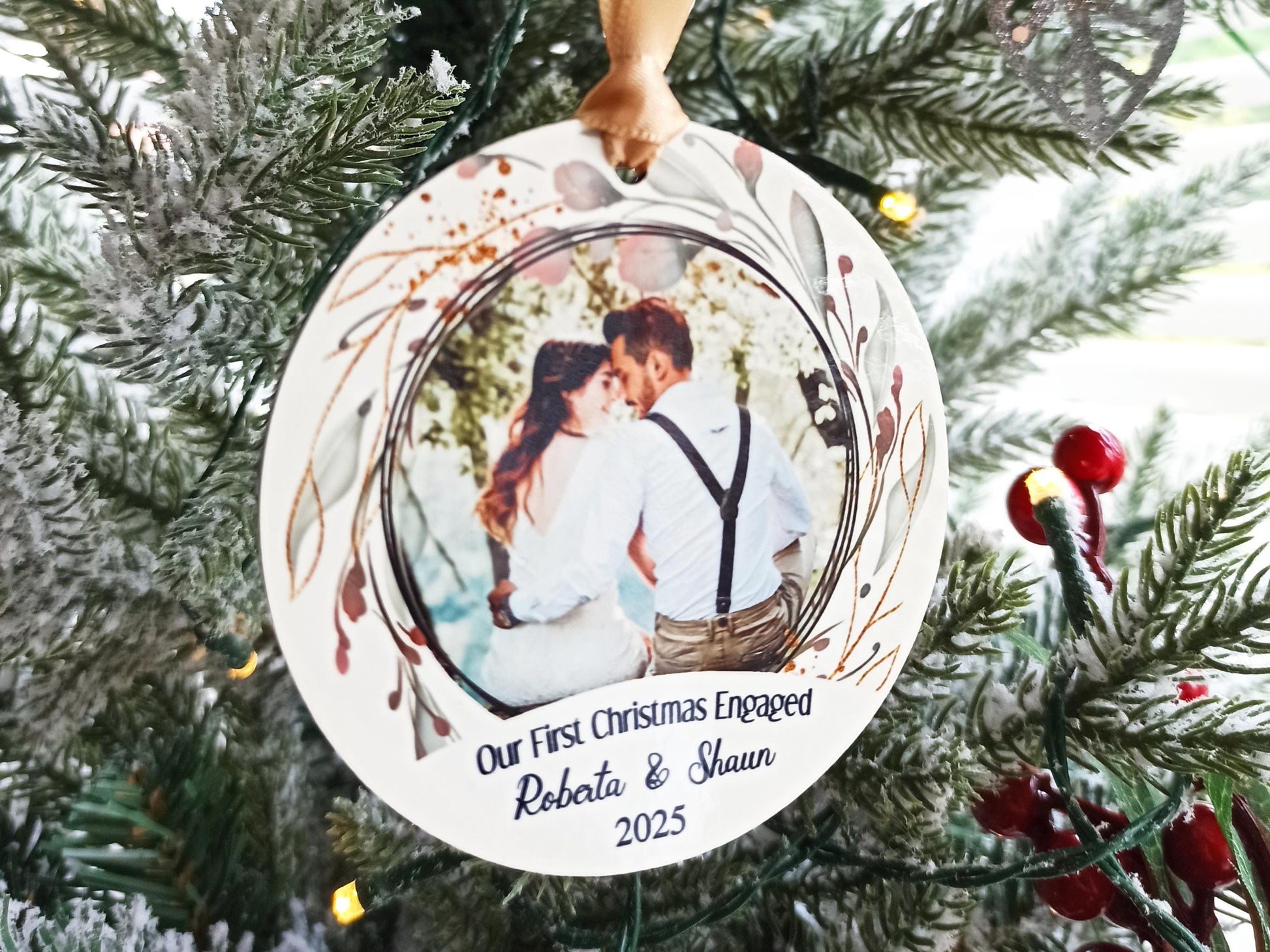 Our First Christmas Engaged, Personalised Photo Tree Decoration