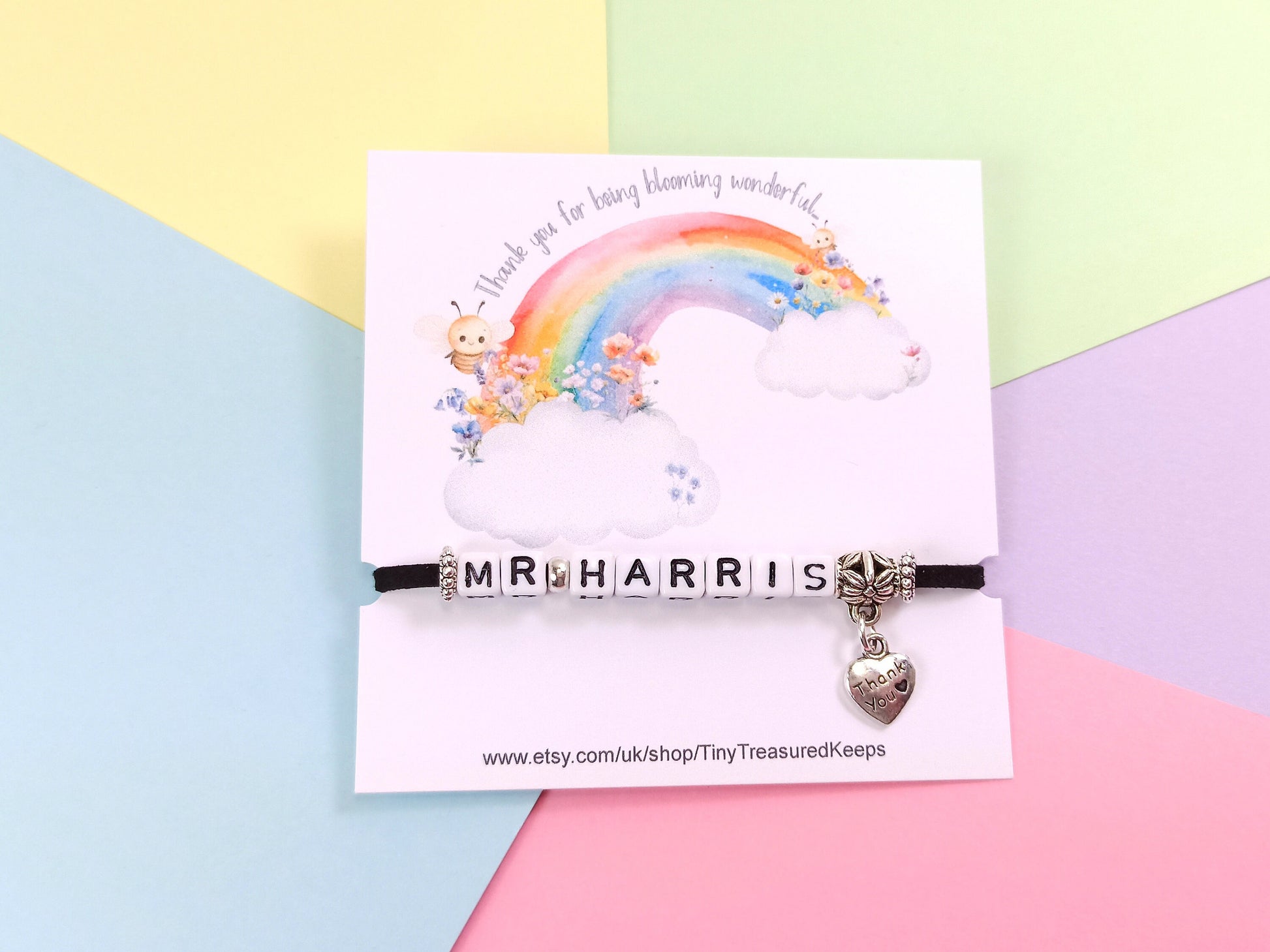Teacher Bracelet Personalised with name, End of term thank you gift for TA, Teaching Assistant, Nursery Worker, SENCO, PSA